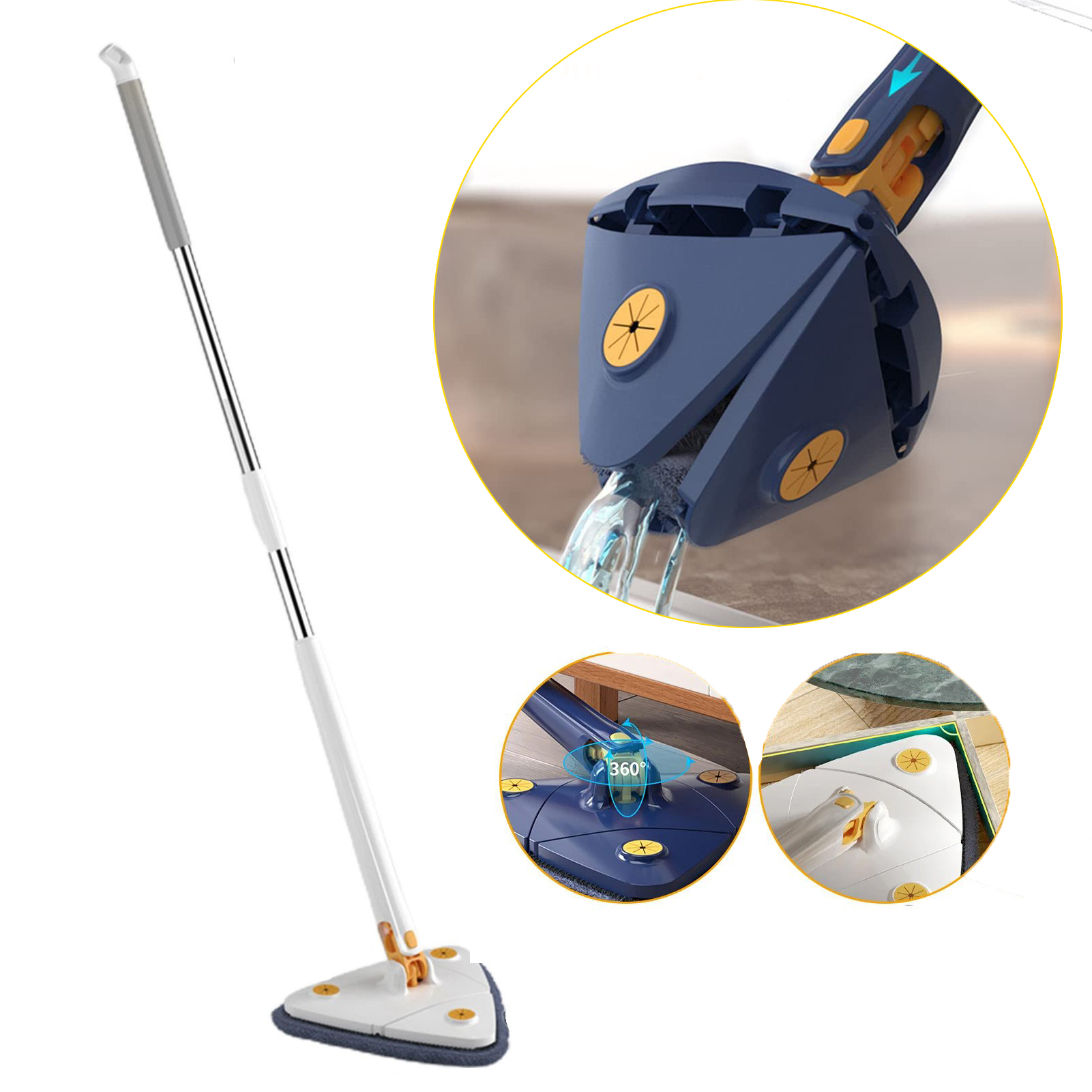 Ύπερ-πρωτοποριακή πτυσσόμενη σφουγγαρίστρα - σκούπα με τρίγωνη περιστρεφόμενη κεφαλή 360° για εύκολο και άνετο καθάρισμα!