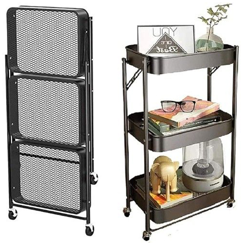 Πτυσσόμενη Τροχήλατη Ραφιέρα - Καρότσι Τριών Επιπέδων με 3 Ράφια και Ροδάκια  Τρόλεϊ Οργάνωσης Διακόσμησης 45x30x77 cm Μαύρο