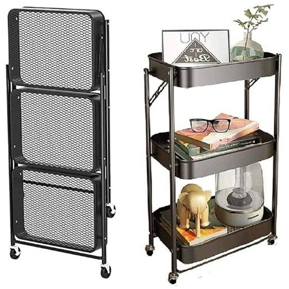 • 1 x Πτυσσόμενη Τροχήλατη Ραφιέρα - Καρότσι Τριών Επιπέδων με 3 Ράφια & Ροδάκια - Τρόλεϊ Οργάνωσης, Διακόσμησης 45x30x77cm - Μαύρο