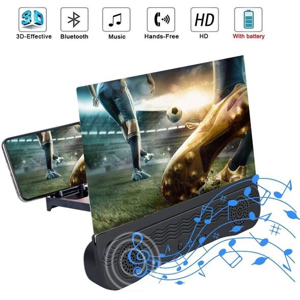Πτυσσόμενη Βάση 3D για Μεγένθυση Οθόνης & Ηχείο Bluetooth - Phone Screen Amplifier - Mobile Home Theater 12.0 inch Μαύρο OEM