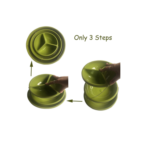 Πτυσσόμενο μπολ 3 επιπέδων ιδανικό για πάρτυ! Σας προσφέρει εξοικονόμηση χώρου εφόσον τα δύο μπολ μαζεύουν και απλώνουν με μία μόνο συστροφή. Τα μπολ διαθέτουν κρυφούς μαγνήτες ώστε να μένουν ενωμένα όταν μαζεύουν. Το μικρότερο μπολ διαθέτει 3 θήκες, κατάλληλες για μικρά σνακ όπως ξηροί καρποί!