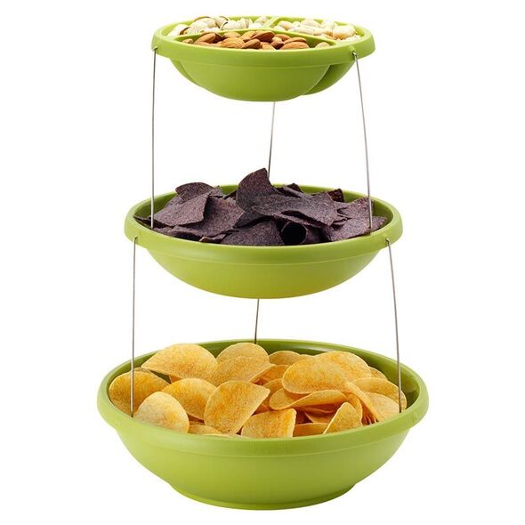 Πτυσσόμενο μπολ 3 επιπέδων ιδανικό για πάρτυ! Σας προσφέρει εξοικονόμηση χώρου εφόσον τα δύο μπολ μαζεύουν και απλώνουν με μία μόνο συστροφή. Τα μπολ διαθέτουν κρυφούς μαγνήτες ώστε να μένουν ενωμένα όταν μαζεύουν. Το μικρότερο μπολ διαθέτει 3 θήκες, κατάλληλες για μικρά σνακ όπως ξηροί καρποί!