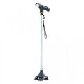 Πτυσσόμενο Τηλεσκοπικό Μπαστούνι Αλουμινίου 59-97cm με Φακό - Αντιολισθητική Λαβή & Τετράποδη Βάση- Ασημί