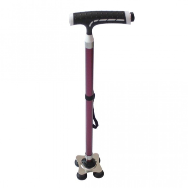 Πτυσσόμενο Τηλεσκοπικό Μπαστούνι Αλουμινίου 59-97cm με Φακό - Αντιολισθητική Λαβή & Τετράποδη Βάση - Κόκκινο