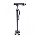 Πτυσσόμενο Τηλεσκοπικό Μπαστούνι Αλουμινίου 59-97cm με Φακό - Αντιολισθητική Λαβή & Τετράποδη Βάση - Μαύρο