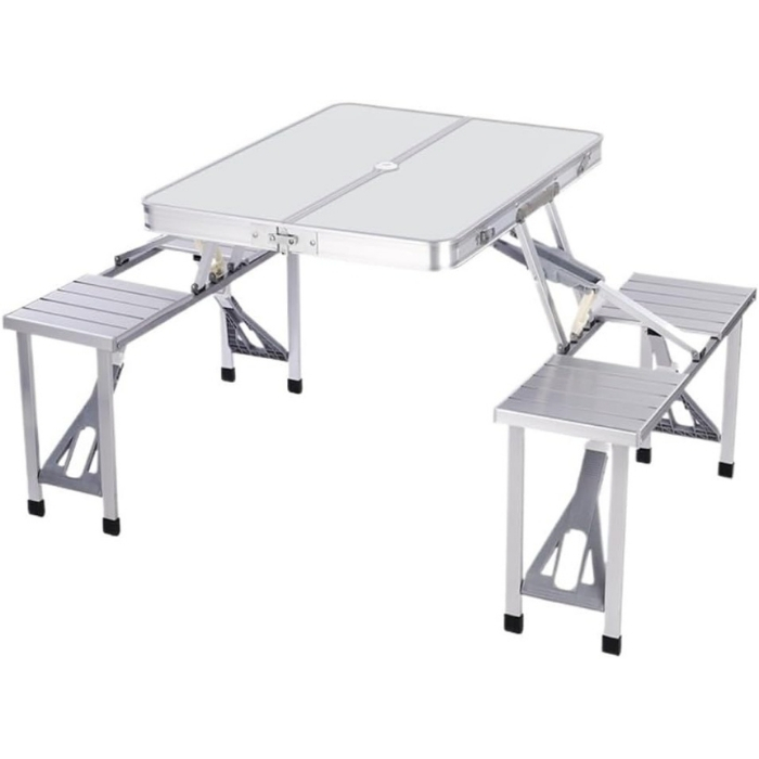 Πτυσσόμενο Τραπέζι Αλουμινίου με Ενσωματωμένα Καθίσματα - 136x85x85cm