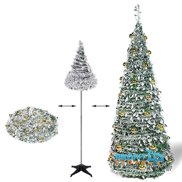 Πτυσσόμενο Χιονισμένο Δέντρο 1,8m που Στήνεται σε 1 Λεπτό με Στολίδια - Γρήγορη & Έυκολη Συναρμολόγηση - Κωνικό Χριστουγεννιάτικο