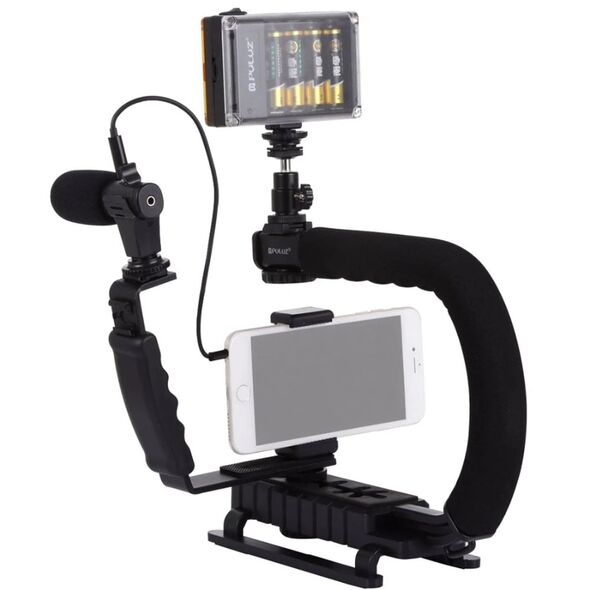Puluz® Σταθεροποιητής Χειρός DSLR, Sport Action Camera, Smartphone & Μικρόφωνο με Φωτισμό LED - U-Grip Gimbal & Stabilizer Vlog Set