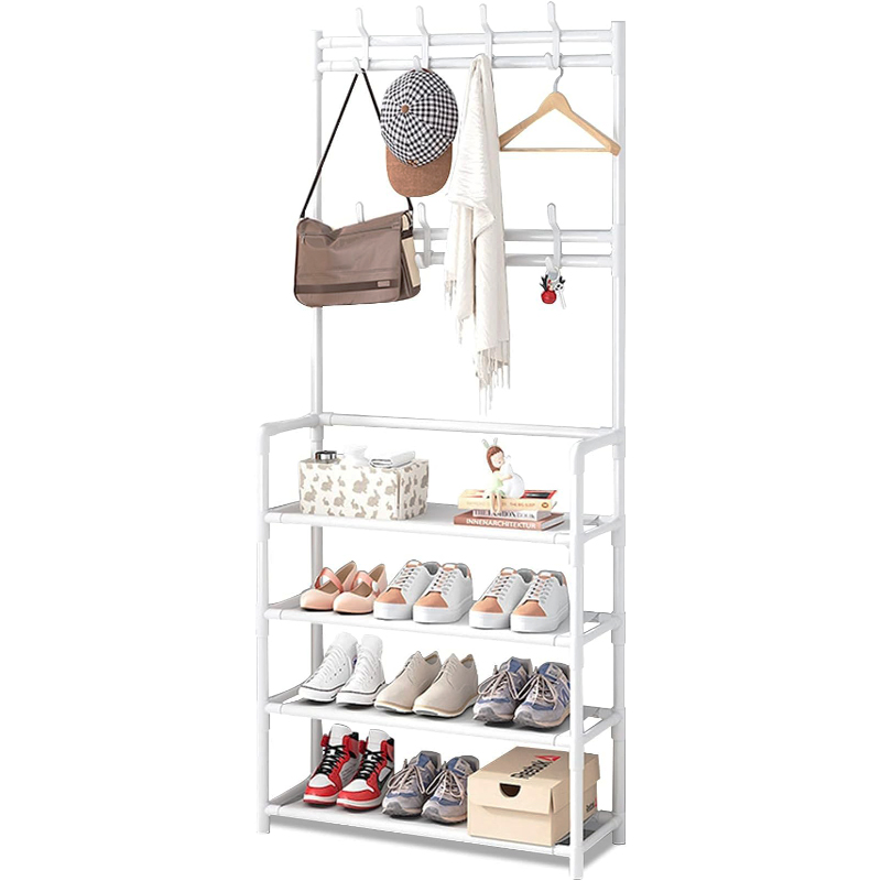 Μια απίστευτα λειτουργική και πολύ κομψή ραφιέρα με παπουτσοθήκη & κρεμάστρα - καλόγερο. Ιδανική για έπιπλο εισόδου, για την τουαλέτα, το δωμάτιο, το Hall. Τέρμα η ακαταστασία. Κρεμάστε ρούχα, μπουφάν, καπέλα και τοποθετήστε παπούτσια & μικροαντικείμενα.