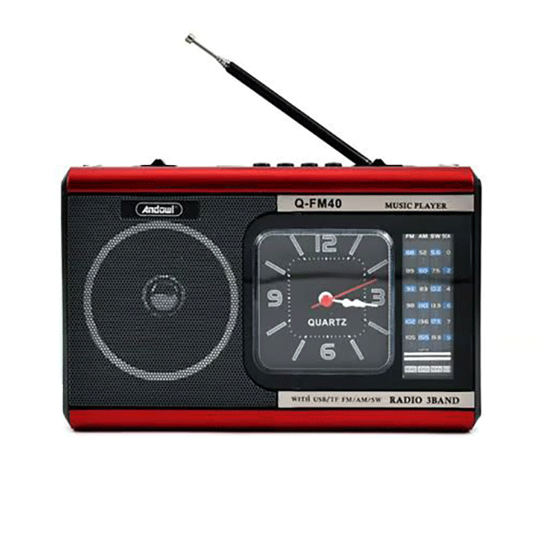 Ραδιόφωνο με Ρολόι ,Ηχείο Bluetooth, Φακό,Mp3 Player και Αναλογικό Χειρισμό Andowl Κόκκινο-Μαύρο
