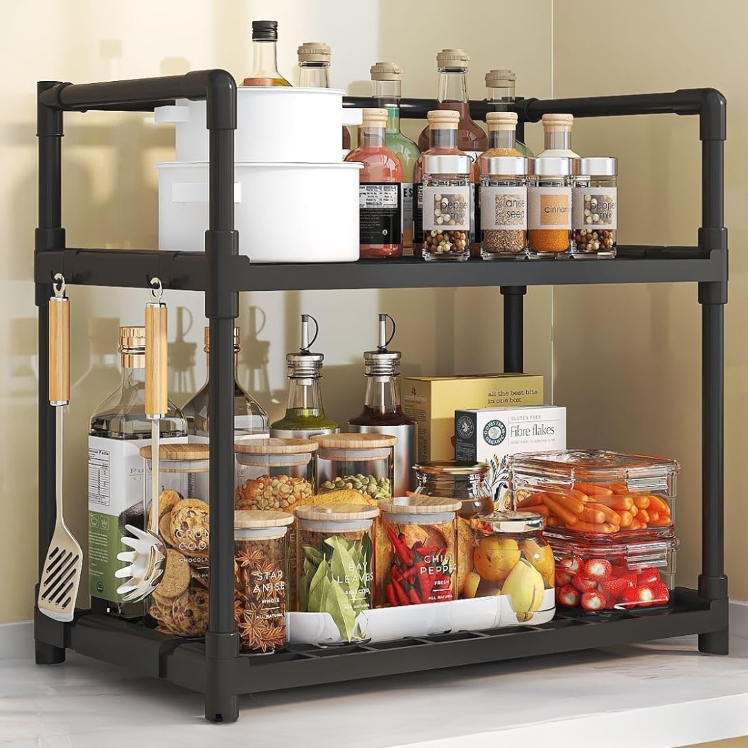 Ανανεώστε τον χώρο σας με μια κομψή και ανθεκτική ραφιέρα 2 επιπέδων, ιδανική για να οργανώσετε αποτελεσματικά τα αντικείμενά σας στην κουζίνα ή το μπάνιο.