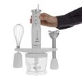 Με το δοχείο του πολυκόπτη, χωρητικότητας 500 ml, μπορείτε να μετατρέψετε το ραβδομπλέντερ σε πολυκόπτη-multi και να σας βοηθήσει να ψιλοκόψετε, να τεμαχίσετε ή να πολτοποιήσετε πιο σκληρά τρόφιμα όπως τυριά, σοκολάτες, ξηρούς καρπούς, λαχανικά ή αρωματικά βότανα.