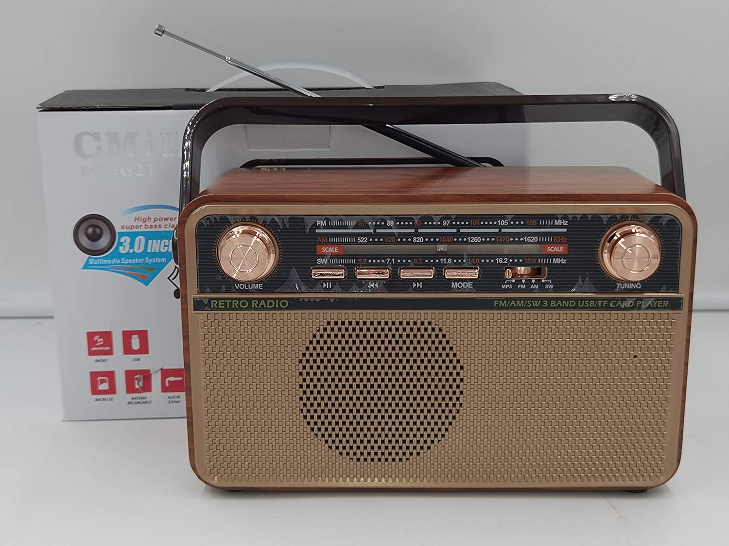 CMIK MK-621 ασύρματο Bluetooth Multimedia ηχείο Mp3 player και παράλληλα ρετρό κλασσικό ραδιόφωνο που ενσωματώνει θύρες για USB, SD και AUX Input.