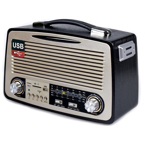 Retro Φορητό Επαναφορτιζόμενο Ραδιόφωνο USB/SD Mp3 Player Kemai Μαύρο
