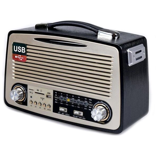 Retro Φορητό Επαναφορτιζόμενο Ραδιόφωνο USB/SD Mp3 Player Kemai Μαύρο