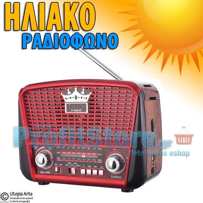 Retro Φορητό Ηλιακό Επαναφορτιζόμενο Ραδιόφωνο Ηχείο USB/MicroSD/AUX Mp3 Player με Φωτοβολταϊκό Πάνελ - Solar Radio Music Multimedia Player