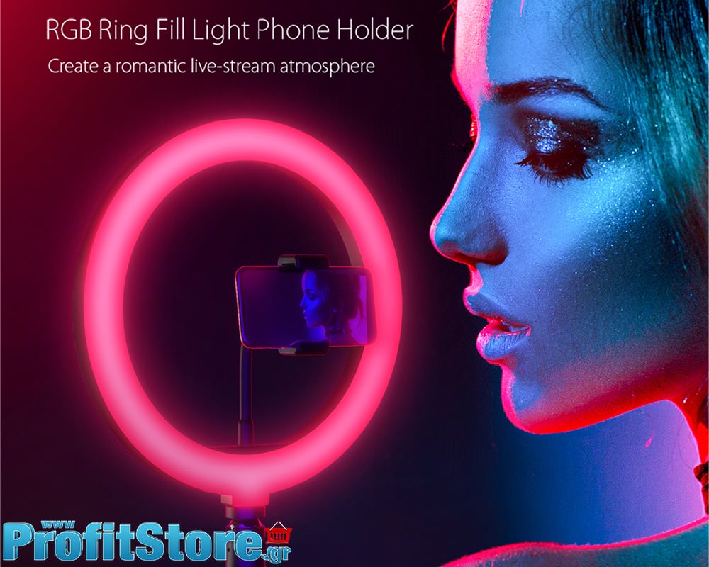 Με αυτό το φωτιστικό φωτογραφικό δαχτυλίδι Ring Led Light Lamp RGB με διάμετρο 26cm με Βάση Στήριξης Κινητού θα απογειώσετε το υλικό σας.