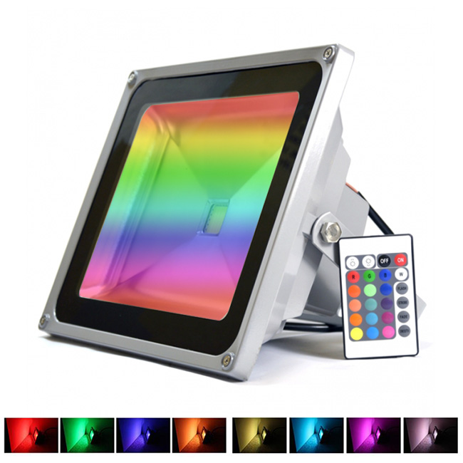 RGB Προβολέας 20Watt, για εξοικονόμηση ενέργειας και ατμοσφαιρικό φωτισμό μαζί με ασύρματο τηλεχειριστήριο για αυτόματη εναλλαγή άπειρων αποχρώσεων.