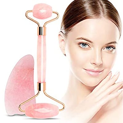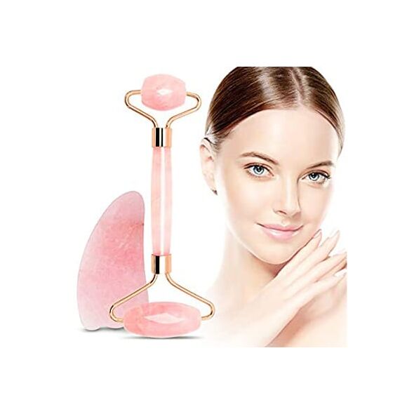 Ρολό & Πέτρα Σετ Ροζ Νεφρίτη για Μασάζ Προσώπου - Anti-aging Facial Massgae Gift Set