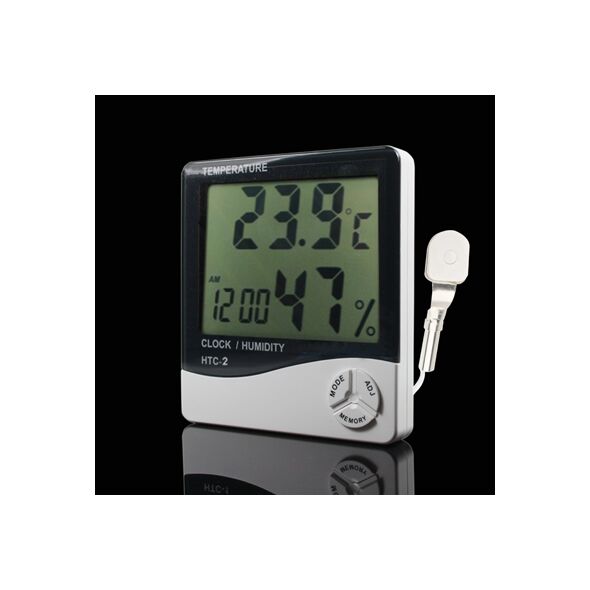 Ένα χρήσιμο ρολόι ξυπνητήρι με ενδείξεις θερμοκρασίας και υγρασίας εσωτερικού και εξωτερικού χώρου, με μεγάλη ψηφιακή οθόνη και μεγάλους ευδιάκριτους αριθμούς.