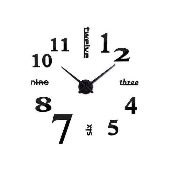 Ρολόι Τοίχου Αυτοκόλλητο 3D DIY 40cm σε Τρία Χρώματα