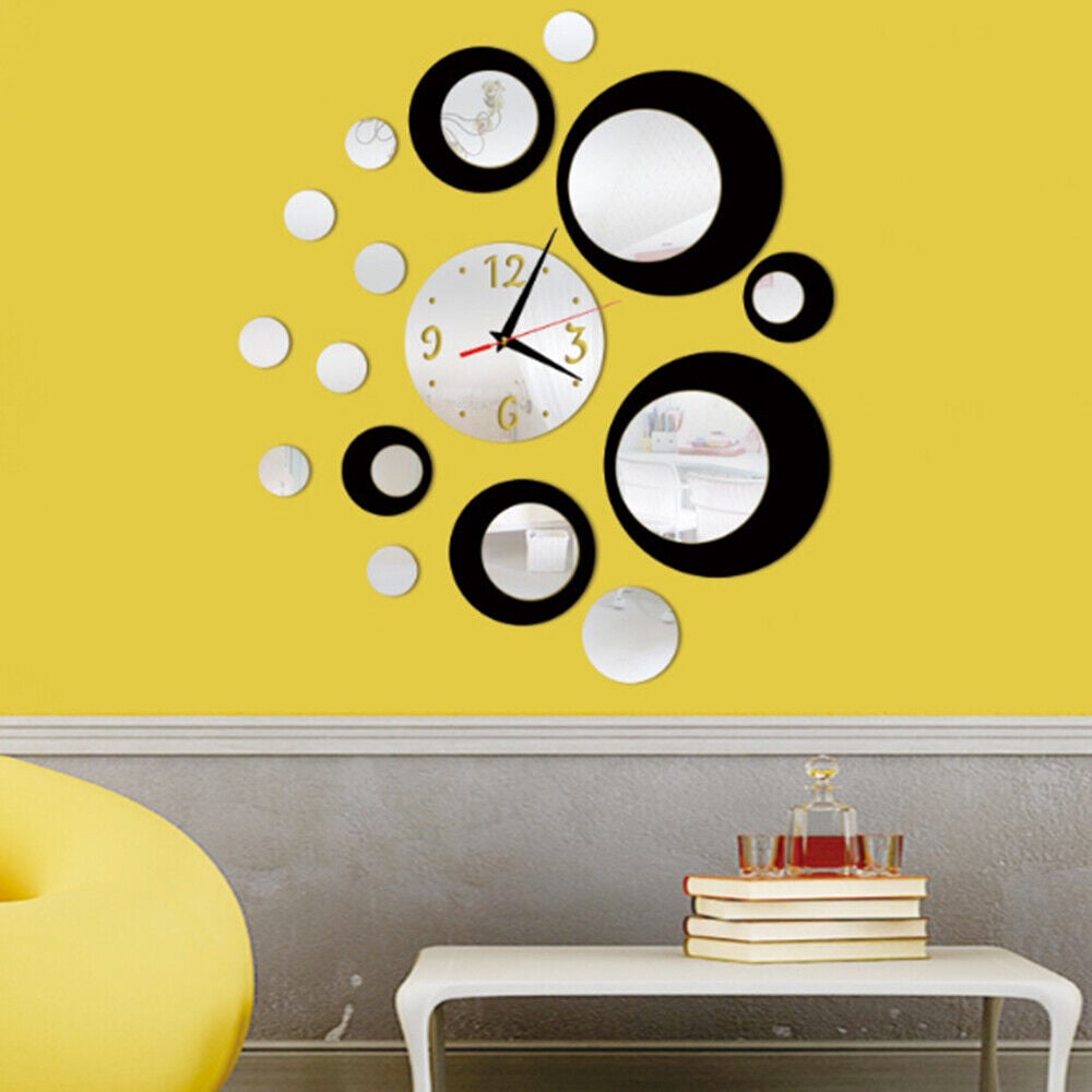 Ρολόι Τοίχου Αυτοκόλλητο 3D DIY Καθρέπτης Μαύρο