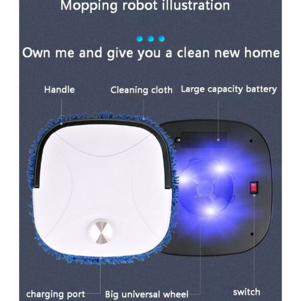 Ρομπότ Ηλεκτρική Παρκετέζα Mop Σφουγγαρίστρα - Αυτόματη Σκούπα Καθαριστής Δαπέδου Επαναφορτιζόμενος - Λευκό