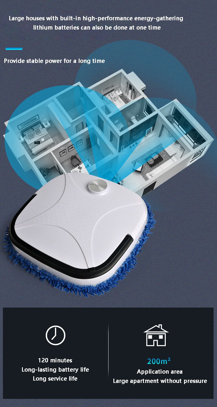 Ρομπότ Ηλεκτρική Παρκετέζα Mop Σφουγγαρίστρα - Αυτόματη Σκούπα Καθαριστής Δαπέδου Επαναφορτιζόμενος - Μαύρο