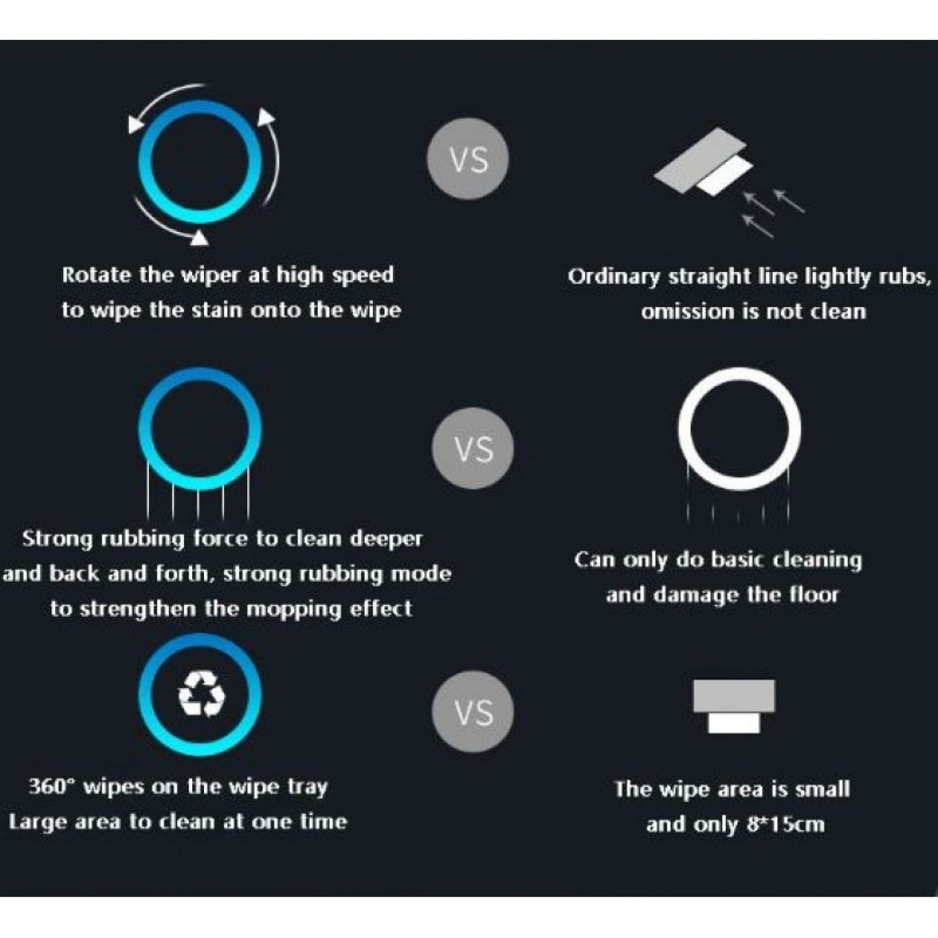 Είναι σχεδιασμένο να προσομοιώνει το καθάρισμα του πατώματος με το χέρι, αλλά προσθέτοντας 200% μεγαλύτερη πίεση (περιστροφική) που σε συνδυασμό με τις μικρο ίνες, θα έχει ως αποτέλεσμα πάντα καθαρά και απόλυτα περιποιημένα πατώματα.