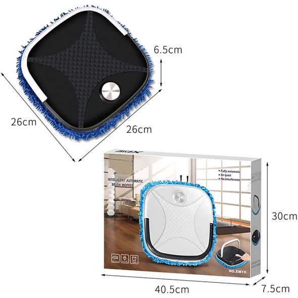 Ρομπότ Ηλεκτρική Παρκετέζα Mop Σφουγγαρίστρα - Αυτόματη Σκούπα Καθαριστής Δαπέδου Επαναφορτιζόμενος - Μαύρο