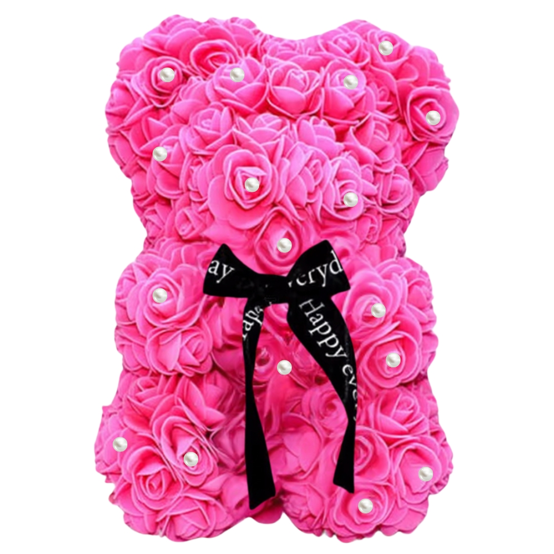 Ροζ Αρκουδάκι από Τεχνητά Τριαντάφυλλα και Πέρλες 25 cm