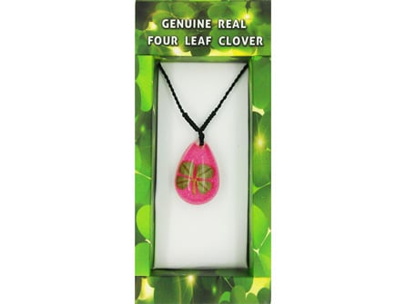 Ροζ Μενταγιόν με Γνήσιο Τετράφυλλο Τριφύλλι