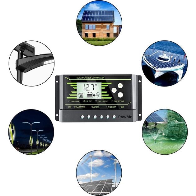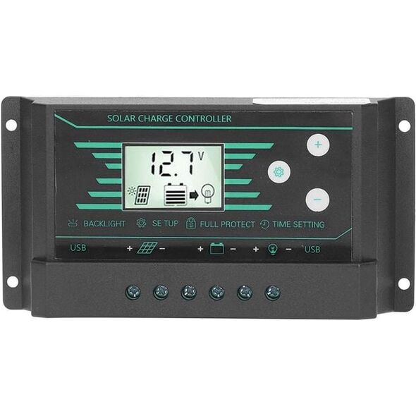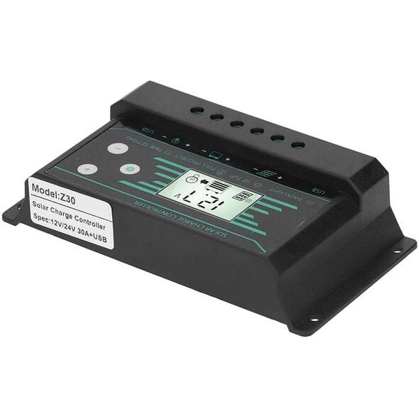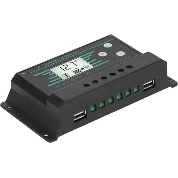 Ψηφιακός ρυθμιστής φόρτισης για φωτοβολταϊκά panel. Κατάλληλος για φωτοβολταϊκά συστήματα 12V/24V ισχύος 30A. Διαθέτει ευανάγνωστη LCD οθόνη για εύκολη απεικόνιση και έλεγχο όλων των ενδείξεων του συστήματός σας και 2 θύρες USB (5V/2.5A). Είναι εξοπλισμένος με αυτόματη αναγνώριση τάσης συστήματος και πληθώρα από ηλεκτρονικές προστασίες.