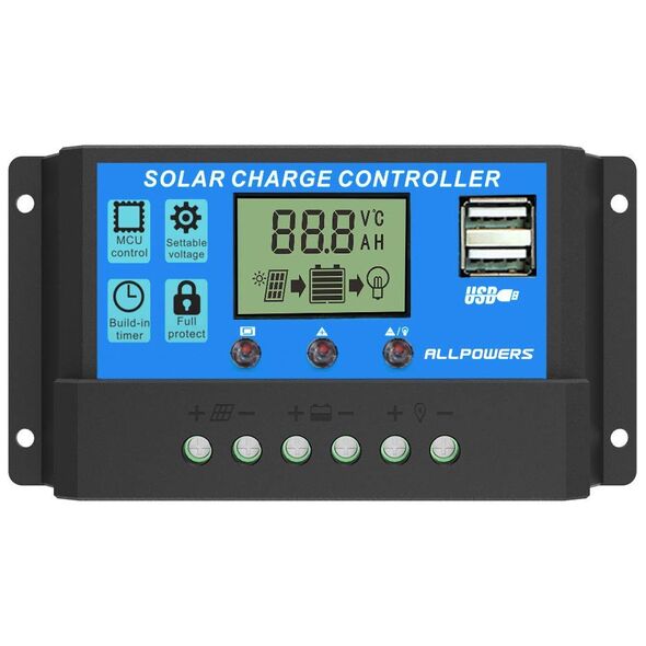 Κατάλληλος για φωτοβολταϊκά συστήματα 12V/24V ισχύος 2A με τεχνολογία φόρτισης PWM με τις μικρότερες απώλειες στο σύστημα. Έχει σχεδιαστεί με δύο θύρες USB, έξοδο USB: 5V/3A max.