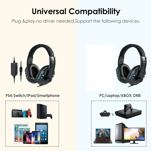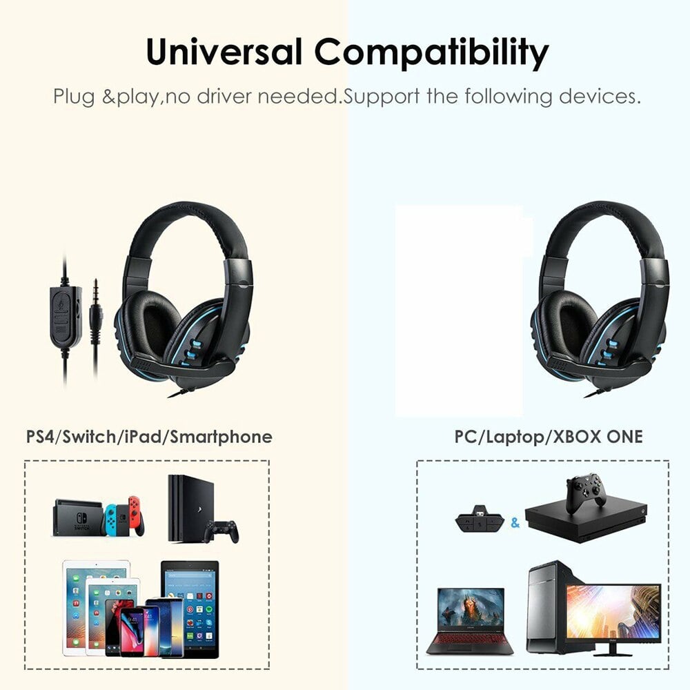 Ρυθμιζόμενα Gaming Ακουστικά On Ear Κεφαλής με Μικρόφωνο & Jack 3.5mm - PC PS4 Headset Μπλε