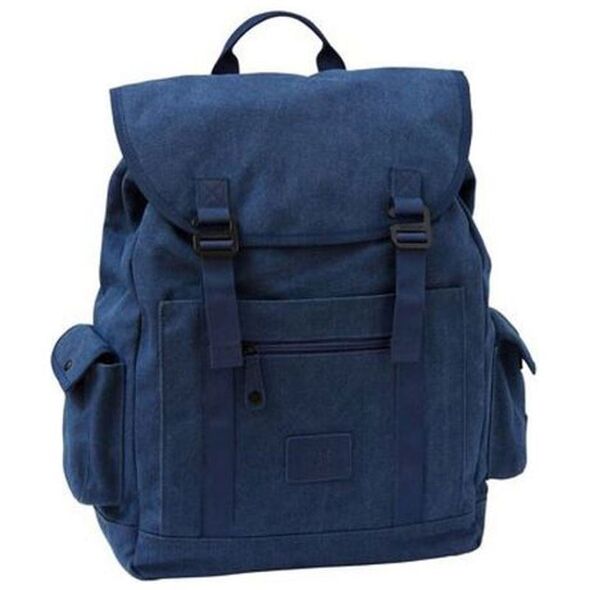Διαθέτει μεγάλο κεντρικό χώρο με κλείσιμο με κορδόνια και από πάνω καπάκι που κλείνει με μεταλλικά άγκιστρα.