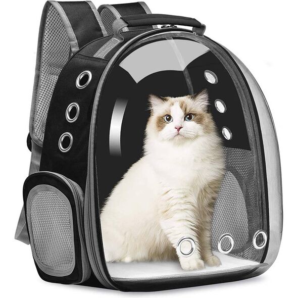 Σακίδιο Πλάτης Μεταφοράς για Σκυλάκια & Γάτες έως 6kg 42x32x22εκ - Τσάντα Ταξιδιού Διάφανη για Μικρόσωμα Κατοικίδια PVC & Ανθεκτικό Ύφασμα - Μαύρη