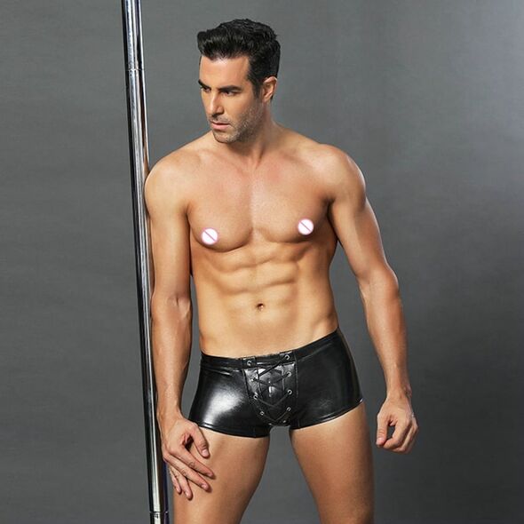 Σέξι Ανδρικό Εσώρουχο - Μποξεράκι Δερμάτινο με Εφέ Δεσίματος - One Size Μαύρο