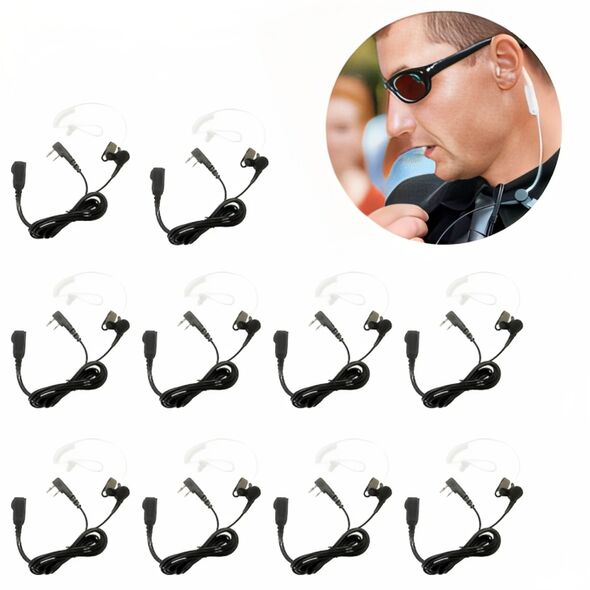 Σετ 10 x Ακουστικά Handsfree 2pin Ασύρματου Spiral Σιλικόνης με Μικρόφωνο Πέτου & Πλήκτρο PTT για Baofeng, PMR, Midland TALK LINE Double Pin