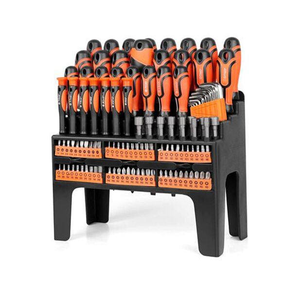 Καινοτόμο σετ με 100 μαγνητικά κατσαβίδια από ανοξείδωτο χάλυβα για μεγάλη αντοχή.