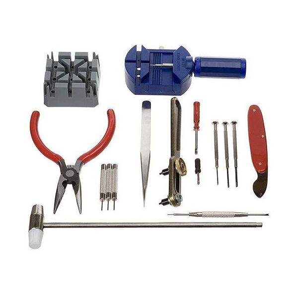 Πολύ χρήσιμο σετ με 16 εργαλεία για επισκευή όλων των τύπων ρολογιών από μια αλλαγή μπαταρίας ή αλλαγή στο λουράκι μέχρι και για επαγγελματικές επισκευές.