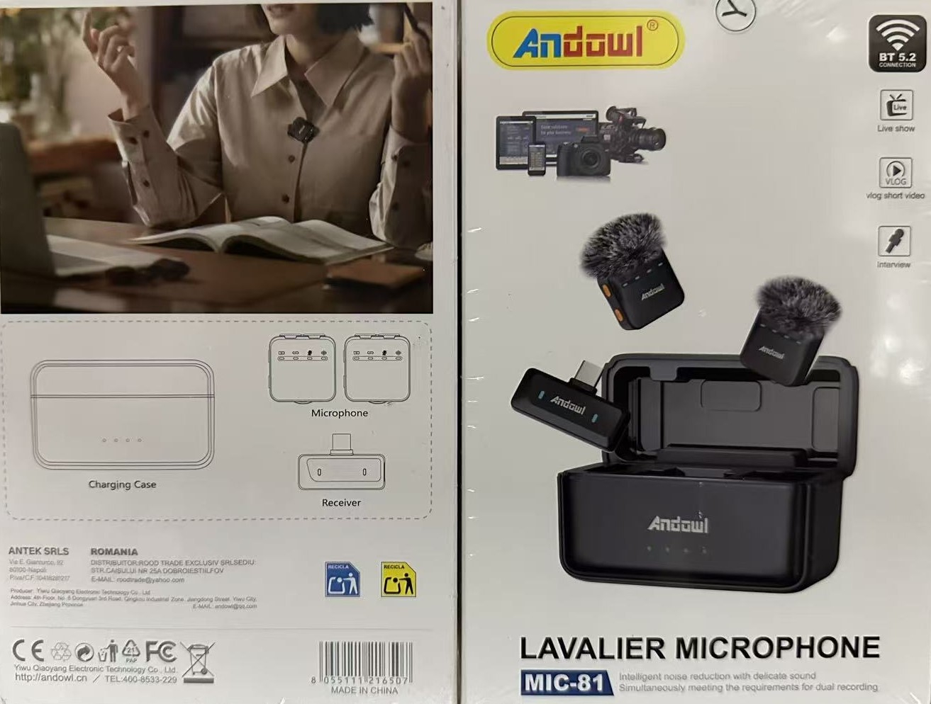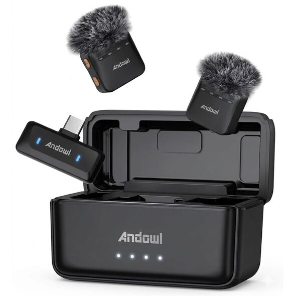 Σετ 2 Ασύρματα Μικρόφωνα Πέτου levalier με Δέκτη & Θήκη Φόρτισης - Andowl