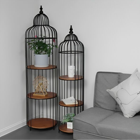 Σετ 2 Διακοσμητικά Μεταλλικά Κλουβιά με 3 Ξύλινα Ράφια - 32x32x130 cm και 40x40x155 cm