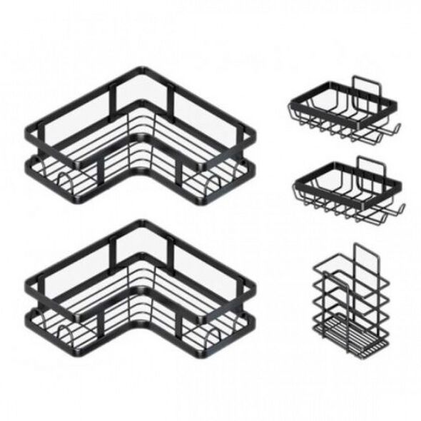 Σετ 2 Επιτοίχια Γωνιακά Αυτοκόλλητα Μεταλλικά Ράφια Μπάνιου-Κουζίνας & 3 Ραφάκια με Αυτοκόλλητο Μαύρο