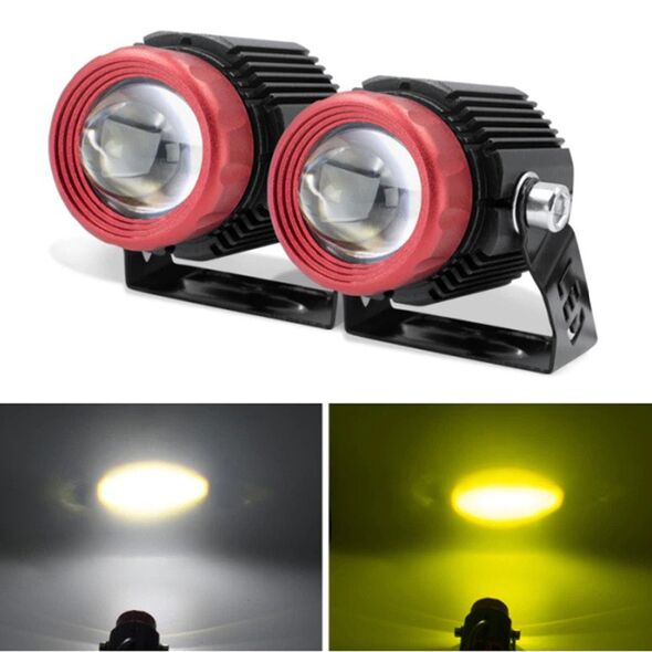 Σετ 2 Spot Αδιάβροχα Προβολάκια Μηχανής ή Αυτοκινήτου Λευκού & Κίτρινου Φωτισμού Αλουμινίου Υψηλής Φωτεινότητας 12000lm