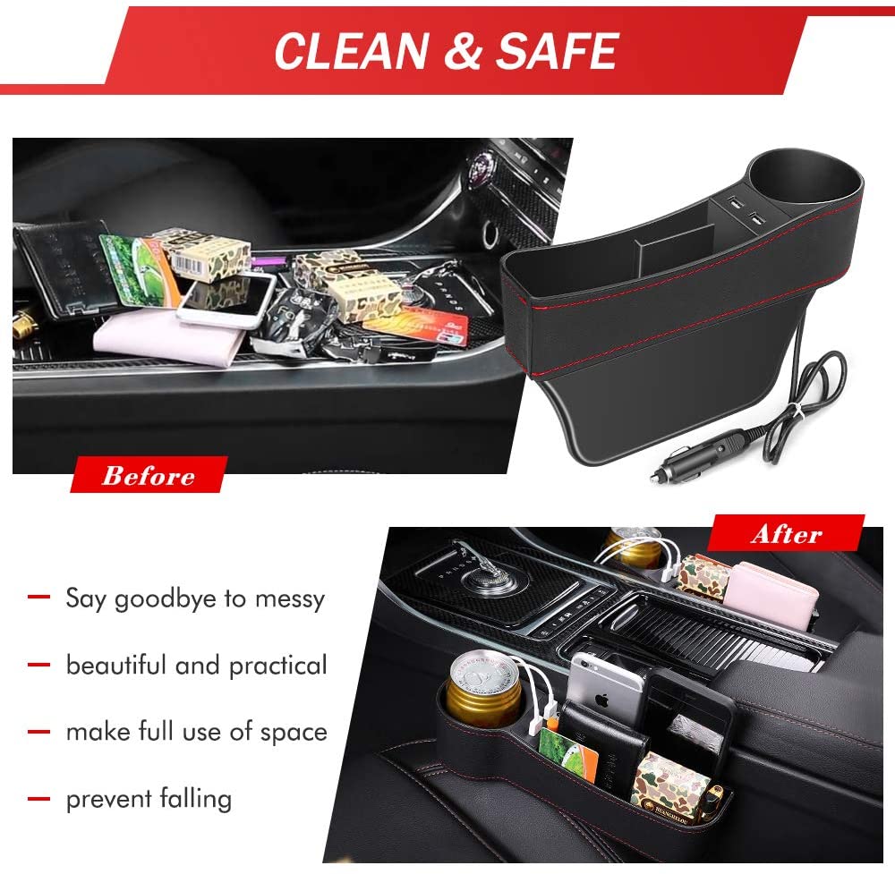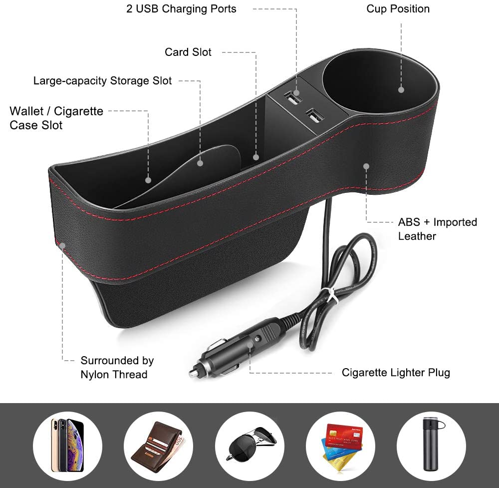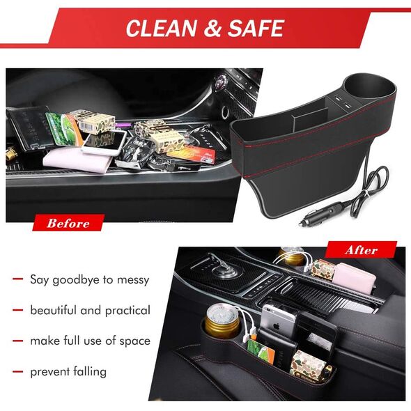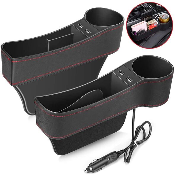Σετ θήκες οργάνωσης και φόρτισης συσκευών, ιδανικές για όλα τα αυτοκίνητα! Προσαρμόζονται εύκολα στα κενά δίπλα στο κάθισμα του οδηγού και του συνοδηγού.