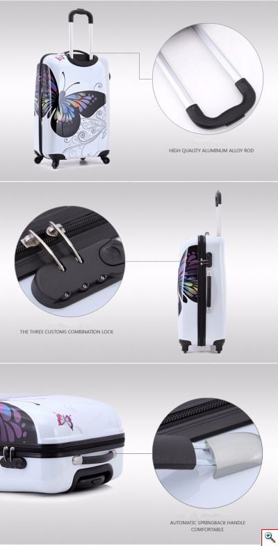 Σετ 2 Βαλίτσες Ταξιδιού ABS με Τηλεσκοπικό Χερούλι, Ροδάκια & Κλείδωμα Ασφαλείας Butterfly