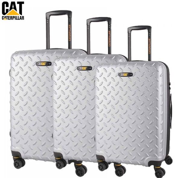 Σετ 3 Heavy Duty Βαλίτσες 50-60-70cm με Κλειδαριά INDUSTRIAL PLATE CAT 83688 με Βαλίτσα Καμπίνας Caterpillar - Starlight Silver 362