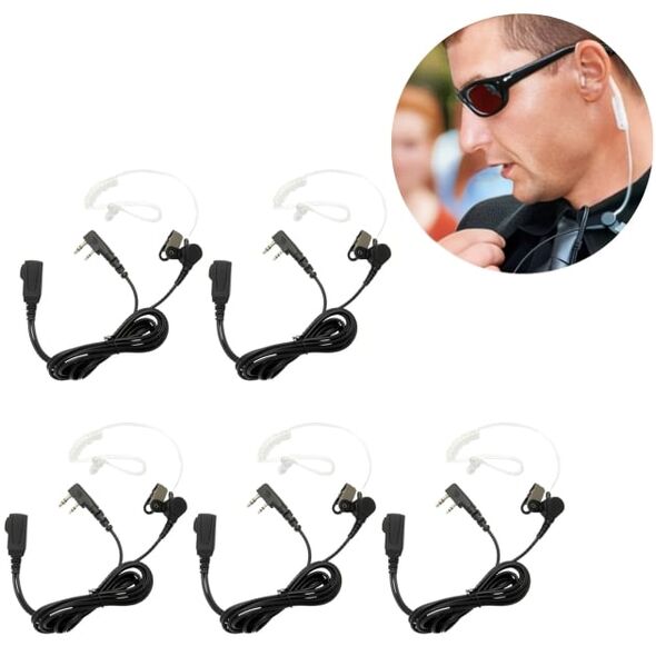 Σετ 5 x Ακουστικά Handsfree 2pin Ασύρματου Spiral Σιλικόνης με Μικρόφωνο Πέτου & Πλήκτρο PTT για Baofeng, PMR, Midland TALK LINE Double Pin