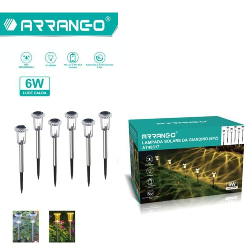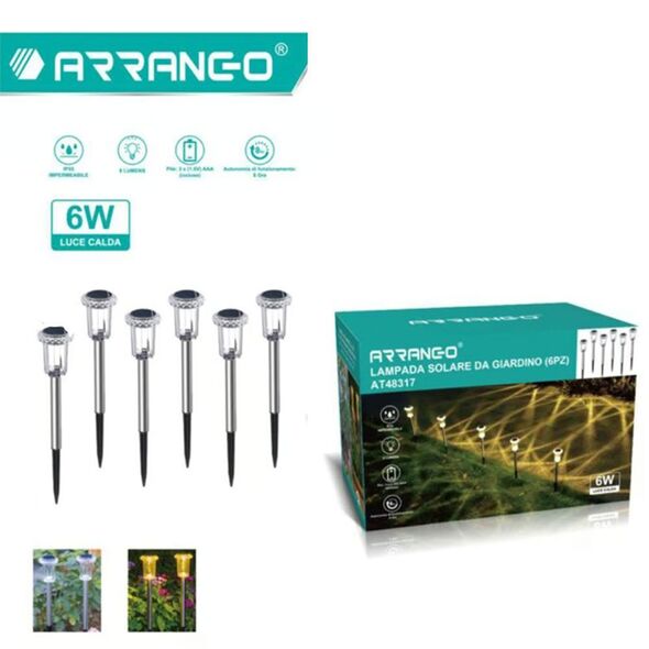 Σετ 6 Καρφωτά Αδιάβροχα Ηλιακά Φωτιστικά Κήπου 6W με Φως Θερμού Λευκού Χρώματος Arrango